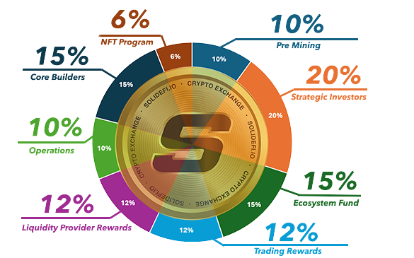 1 Billion SOLI Token when fully minted, is distributed the following way.
